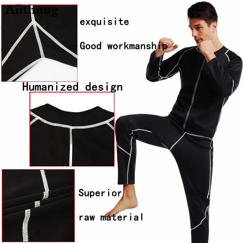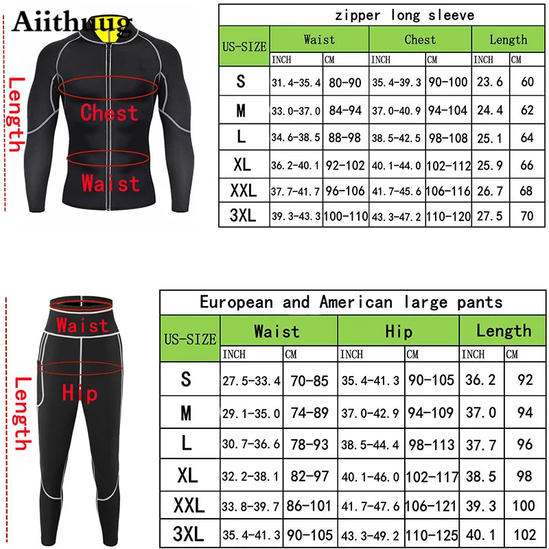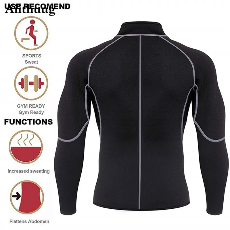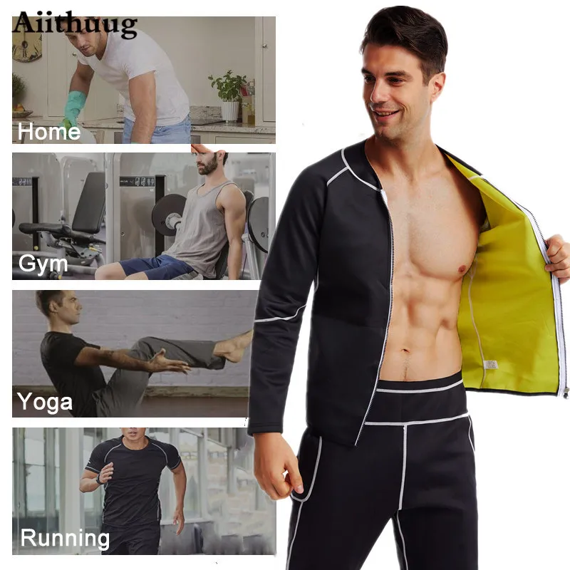 Aiithuug Slim Sets Sauna Suit for Men Sweat Jacket Long Sleeve Workout Sauna Shirts Zipper Neoprene Gym Slimming Top Body Shaper