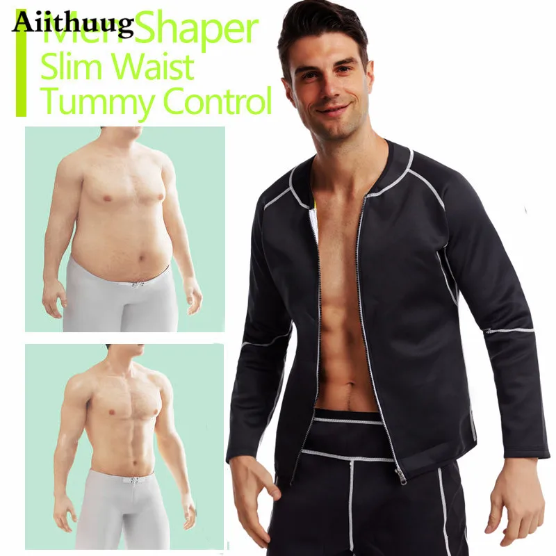men Hot Thermo Body Shaper Slimming : long Sleeve jacket Workout Neoprene Sauna Sweat Waist Trainer Weight