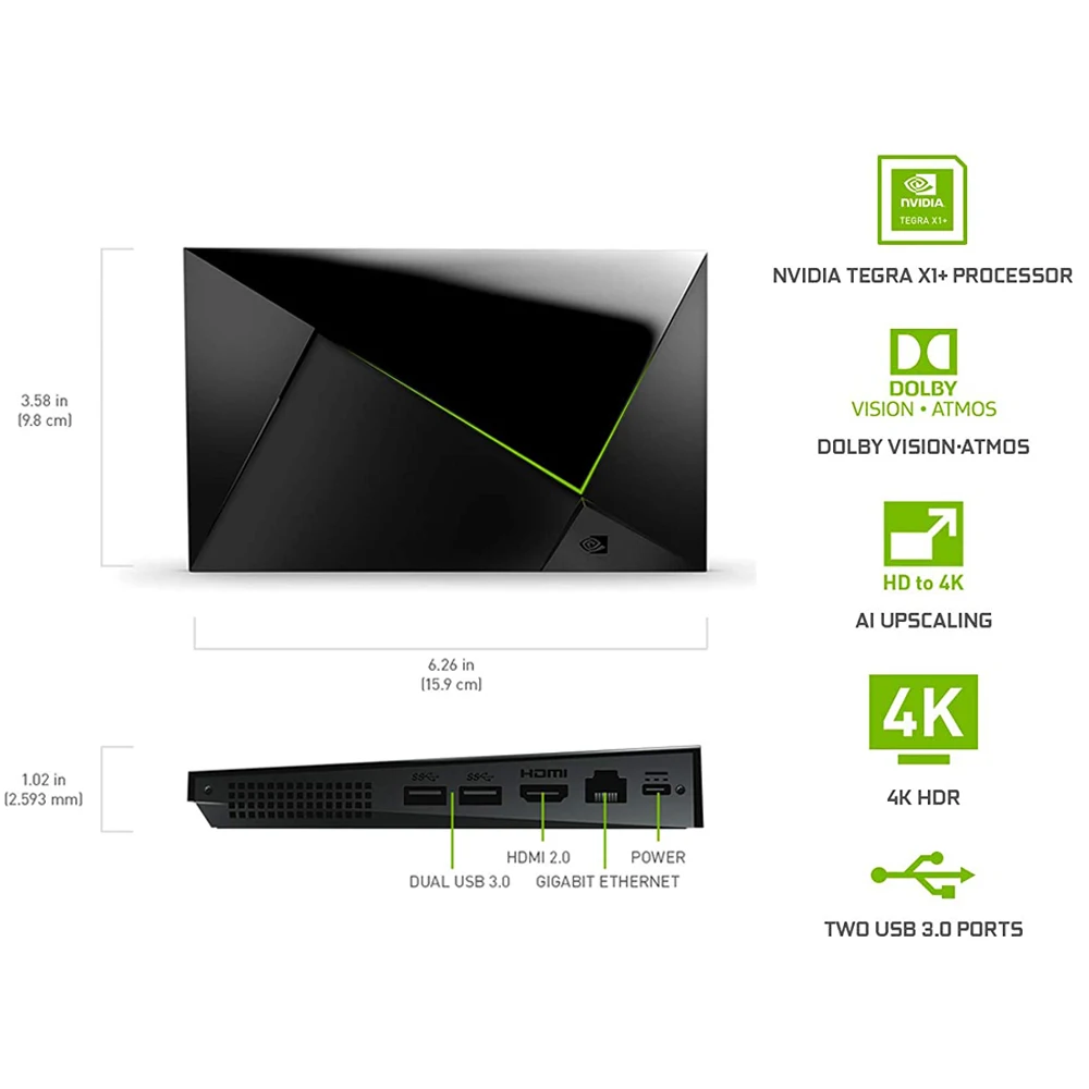 NVIDIA SHIELD TV Pro 4K HDR Streaming Media Play High Performance Dolby Vision 3GB RAM 2X USB Works Alexa panoramic sound TV Box