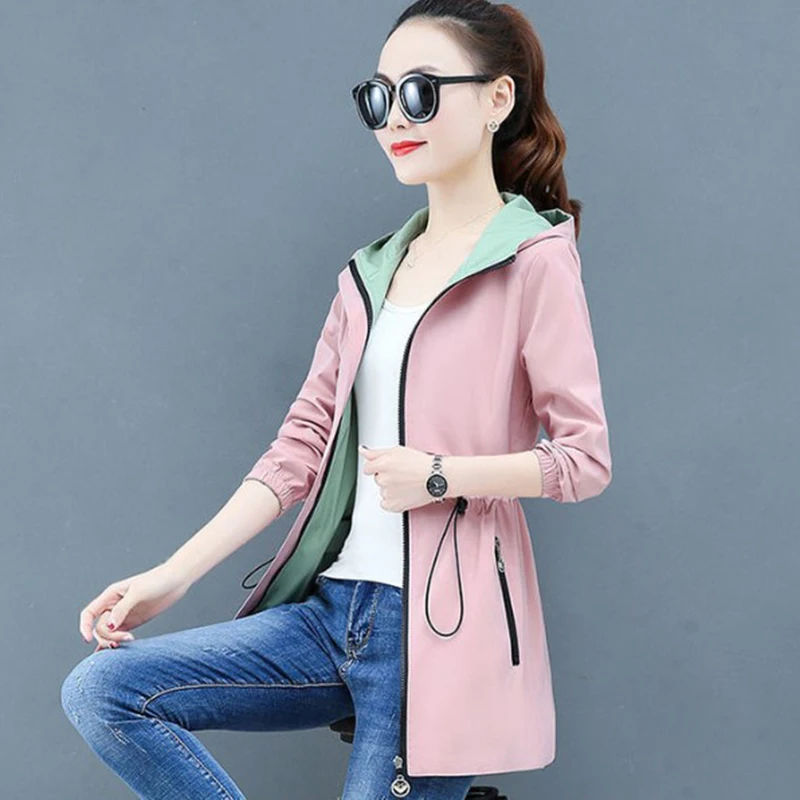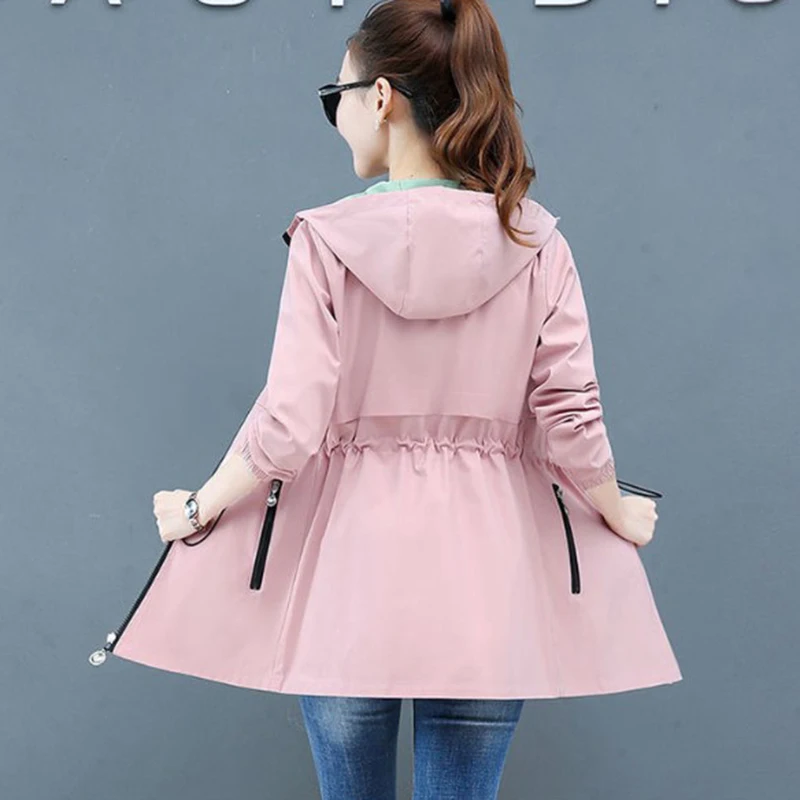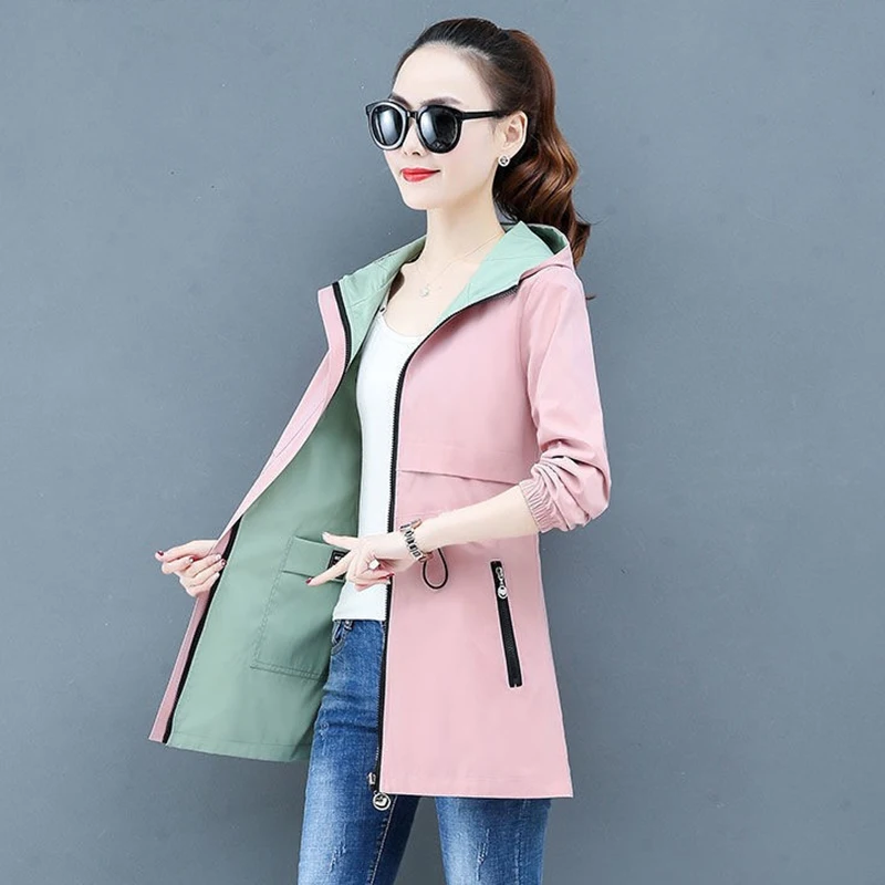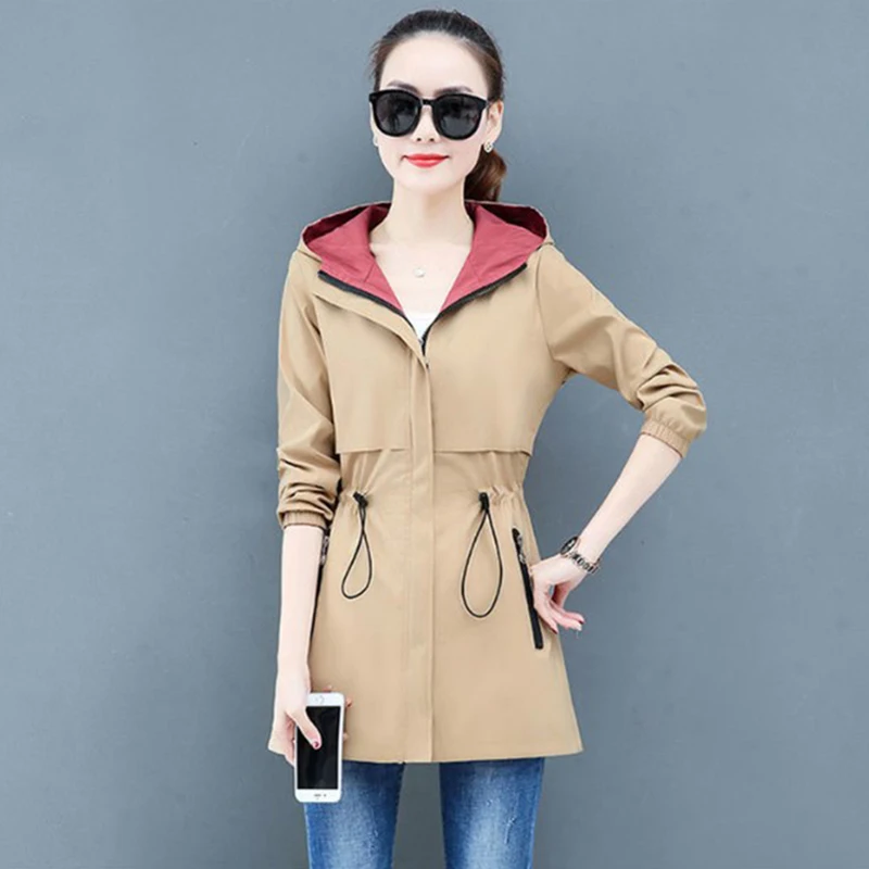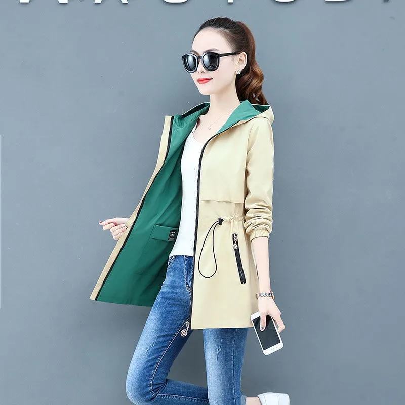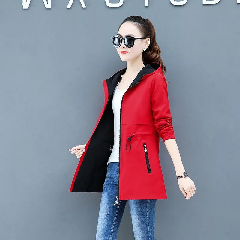 Spring Autumn Women's Trench Coat New Double-sided Wear Plus Size 5XL Hooded Mid Long Outerwear Female Windbreaker Basic Coats